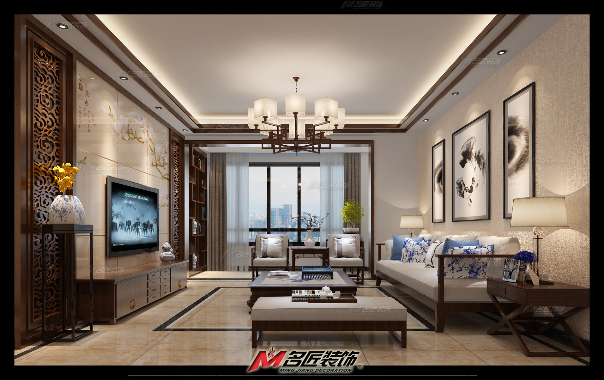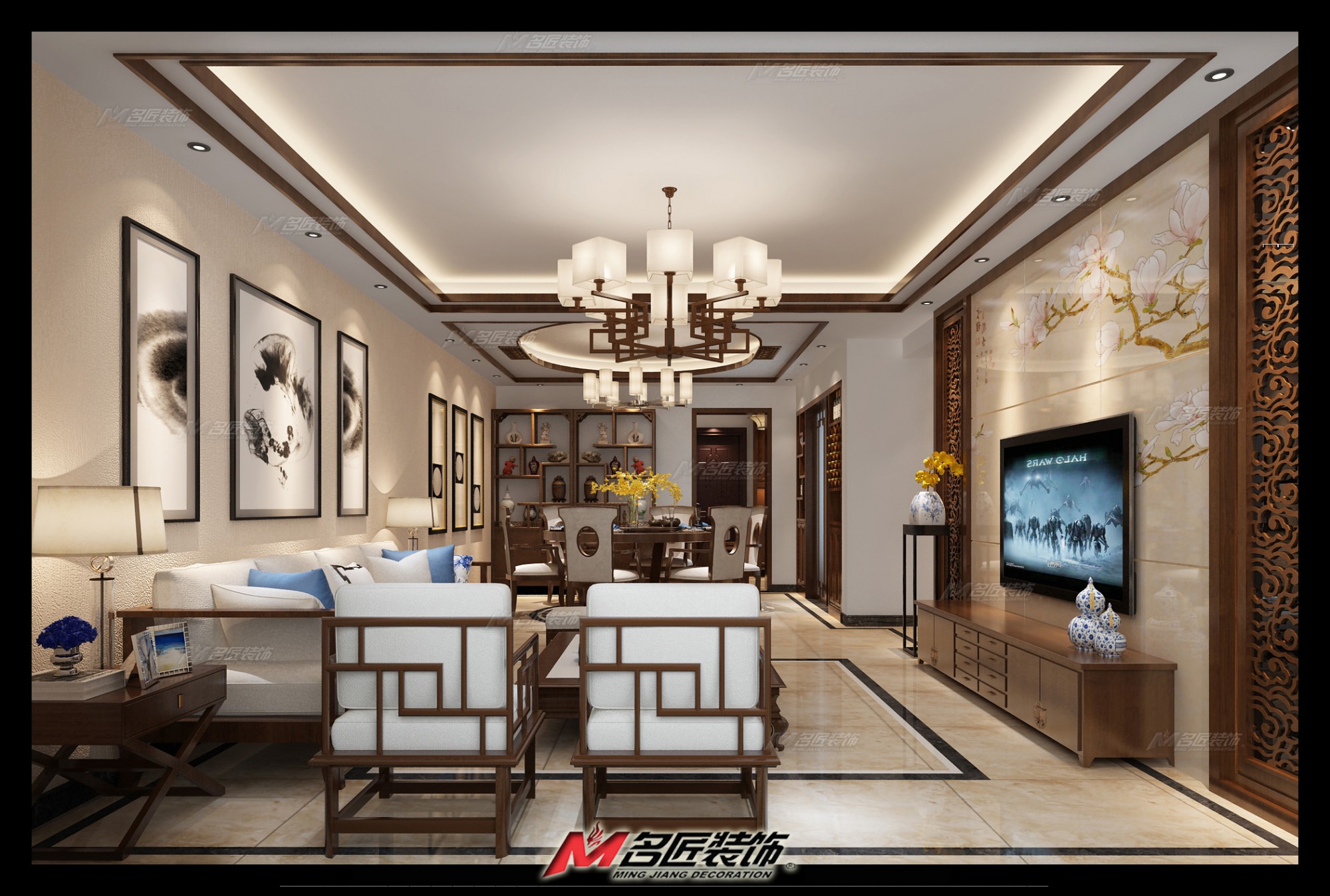 佛山麗日豪庭三居新中式風(fēng)格裝修效果圖