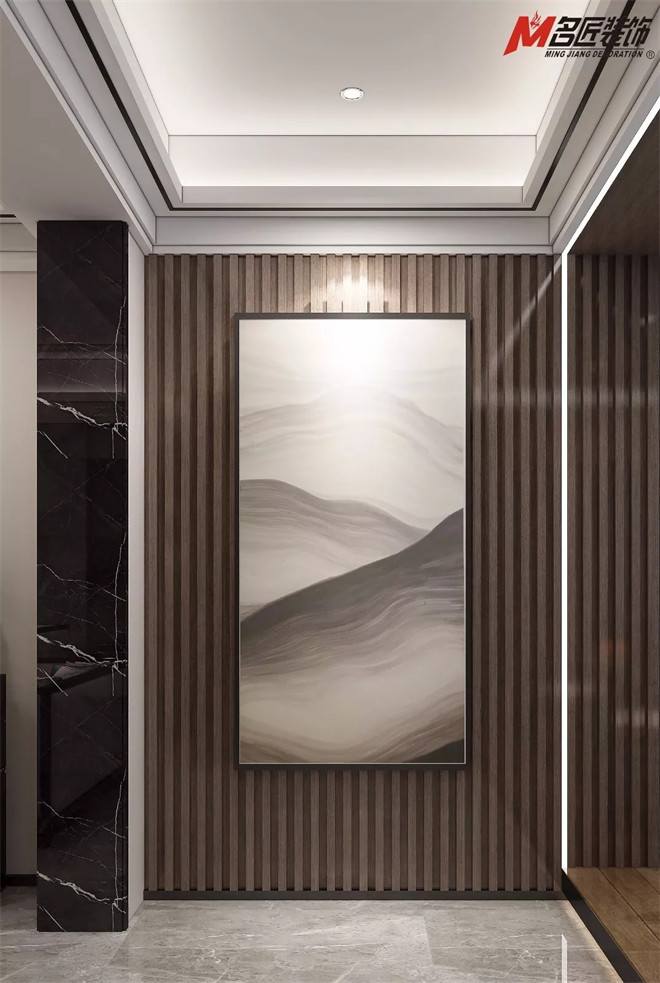 整體效果現(xiàn)代新中式美學(xué)別有一番味道,每一處都透露著對東方雅致生活意境的美好向往。入戶的玄關(guān)木飾與背景均攜帶著東方詩性的紋路,流露出新中式大度的優(yōu)雅風(fēng)骨。