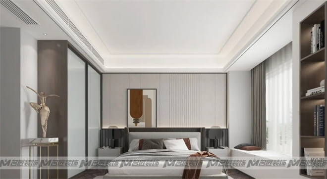 主臥的衣柜藏有“玄機(jī)”,與床頭柜輕觸的抽屜不過是個偽裝者。打開柜門上下兩個掛衣桿解決掛衣收納難題且完美避開床頭柜。深淺不一的咖色系與灰色系,沉穩(wěn)內(nèi)斂又豐富。