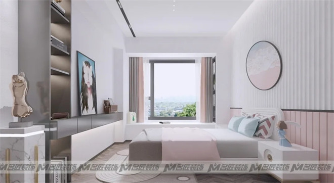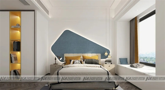 黑白灰不應(yīng)該是永遠(yuǎn)的百搭色,我們的眼睛需要另外一種更加治愈的顏色。設(shè)計師運用時髦的亮黃色與藍(lán)色,讓專屬于孩子的睡眠空間溫暖而有時尚感。整體在軟裝和墻體的條型的映襯下格外明朗。