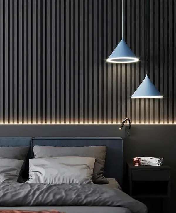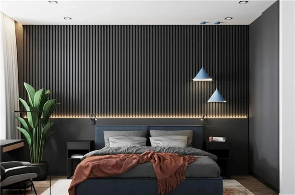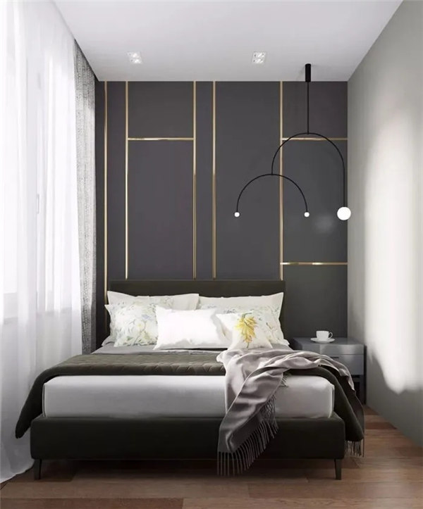 臥室空間整體采用黑灰色調(diào)搭配木質(zhì)地板,穩(wěn)重,大氣,卻又不失品味,有令人眼前一亮的感覺。