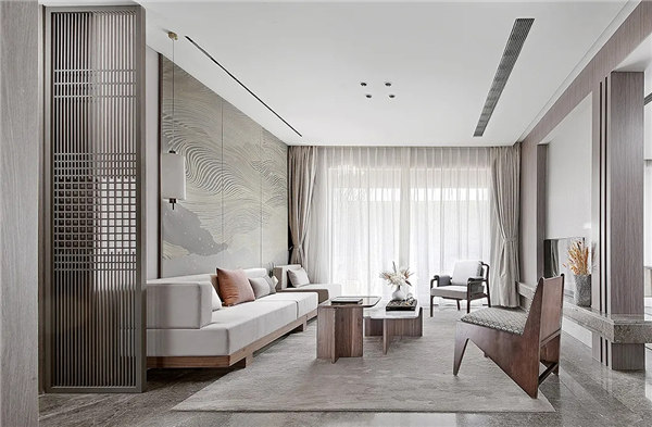 現(xiàn)代元素與古典元素相結(jié)合的方式,立足于傳統(tǒng),又施之以創(chuàng)新,呈現(xiàn)出了極為濃郁的東方情調(diào)。傳統(tǒng)與現(xiàn)代交融,古樸與時(shí)尚融匯,新中式是人們?cè)谛鷩讨凶非箝e云野鶴的捷徑,在自己的一方天地中,感悟時(shí)間的悄然流逝,平和淡然。
