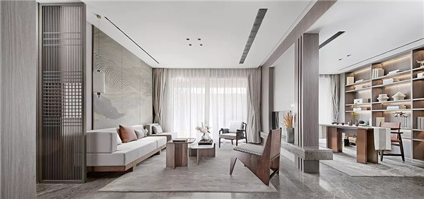 “輕奢化”的新中式風(fēng)格,突破了傳統(tǒng)中式可能過(guò)于厚重的詬病,陳設(shè)不過(guò)于浮夸,色彩素雅和諧,婉約別致,突出優(yōu)雅而低調(diào)的東方式奢華