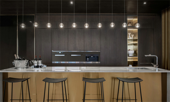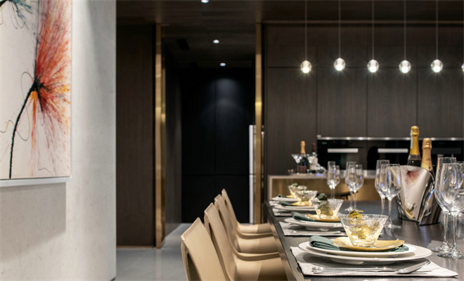 藉由洗鏈線條與細膩工藝語匯,并將時尚語匯與大器空間進行重釋,萃取特色作為視覺符號,令空間宛若生活藝術居所