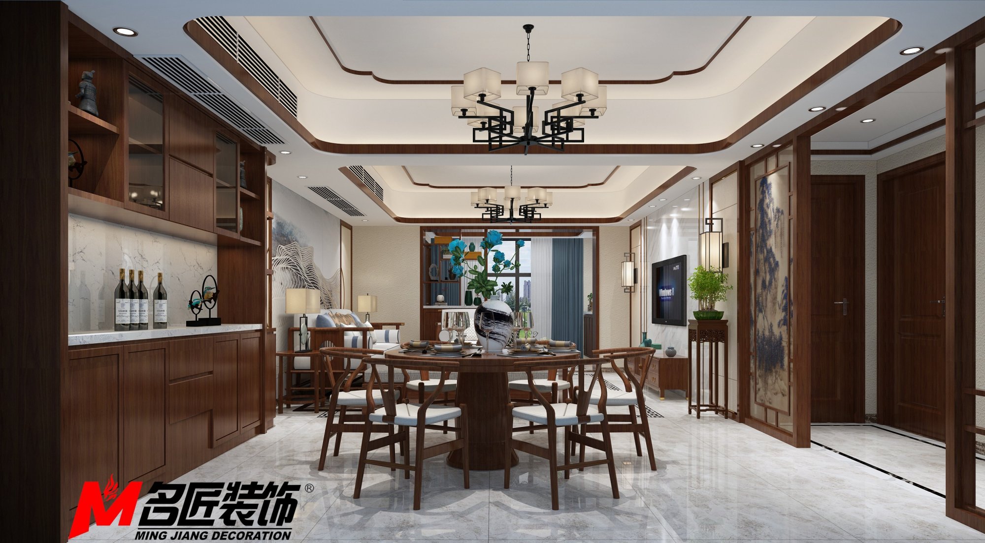 合肥金紫二居新中式風格裝修效果圖