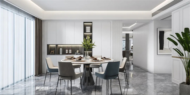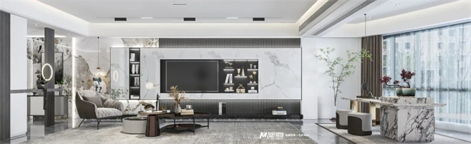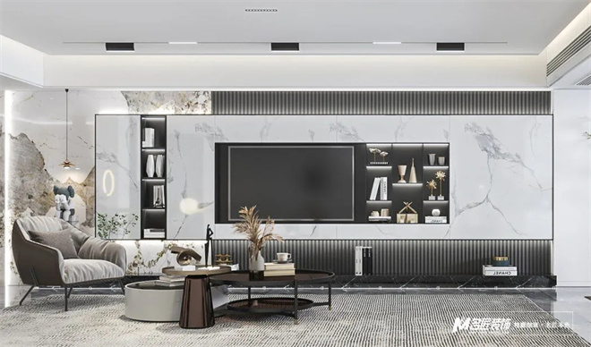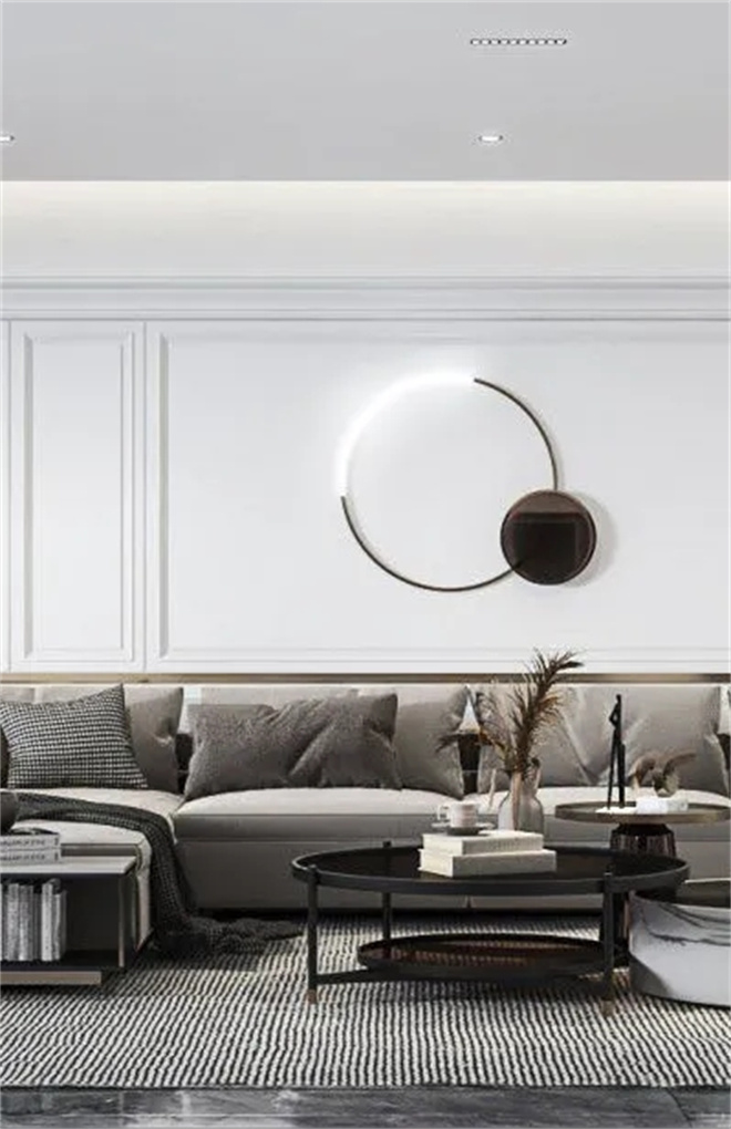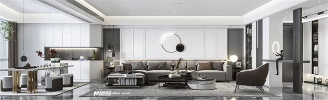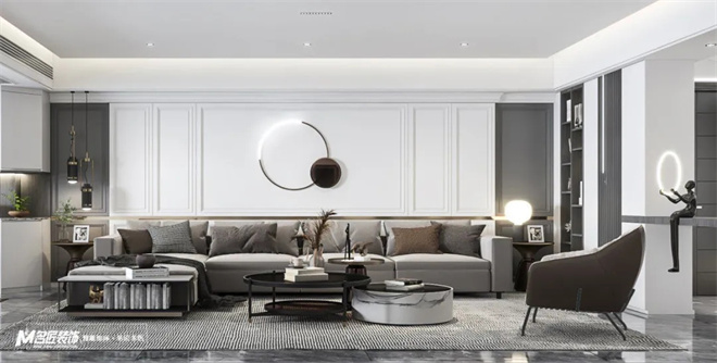 客廳黑白灰為主色調,使得整體空間產生豐富的層次感,適當?shù)牧舭?,在這種現(xiàn)代美學的基礎上進行藝術化的改造。