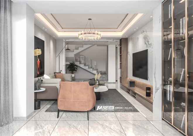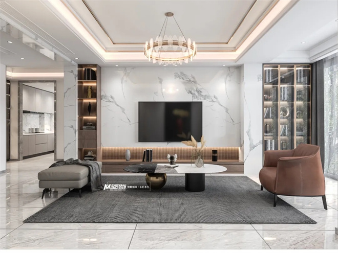 以輕奢為設(shè)計(jì)理念的貫穿與整個(gè)空間。對自然藝術(shù)品位有極高的要求為出發(fā)點(diǎn),將現(xiàn)代簡約的設(shè)計(jì)與時(shí)尚格調(diào)相融合,作為家庭日常生活主要活動的共有空間,
