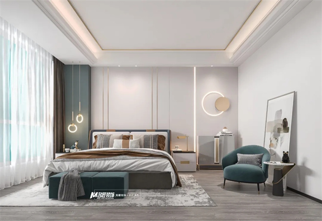 當(dāng)清晨醒來,窗外還有幾縷陽光透過紗窗照射進(jìn)來,如此春意的設(shè)計(jì)手法把空間與自然