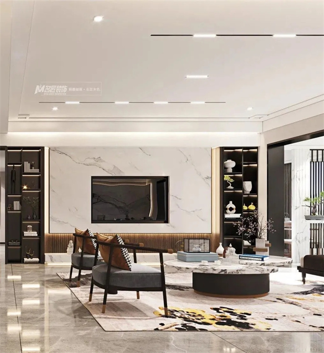 讓空間不至于局促憋悶。再依據(jù)現(xiàn)代裝修的特點(diǎn)結(jié)合大理石、黃銅、水晶等元素