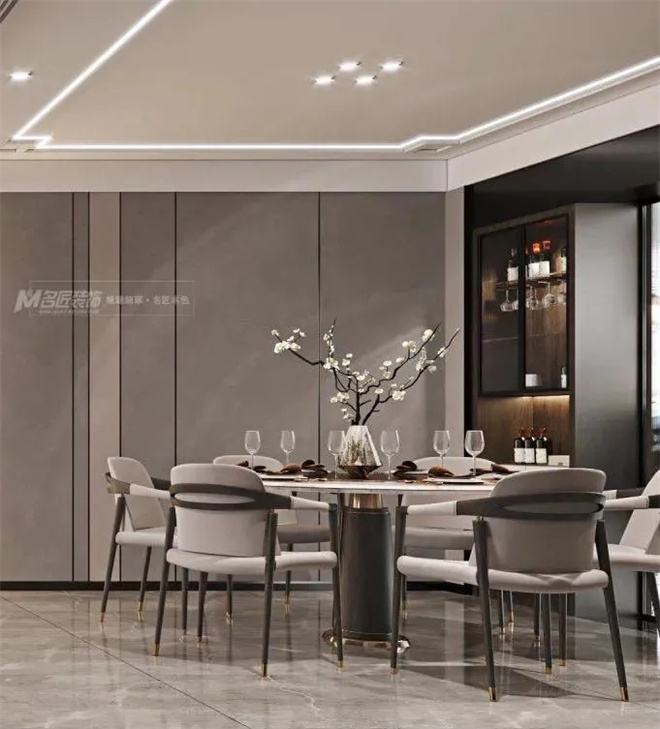 保留氣韻上的筋骨,形式上最大程度地舒適化處理。窄邊細(xì)腿的家具不失為一個(gè)聰明的選擇,視覺上增加空間通透感,巧妙地將空間“變大”