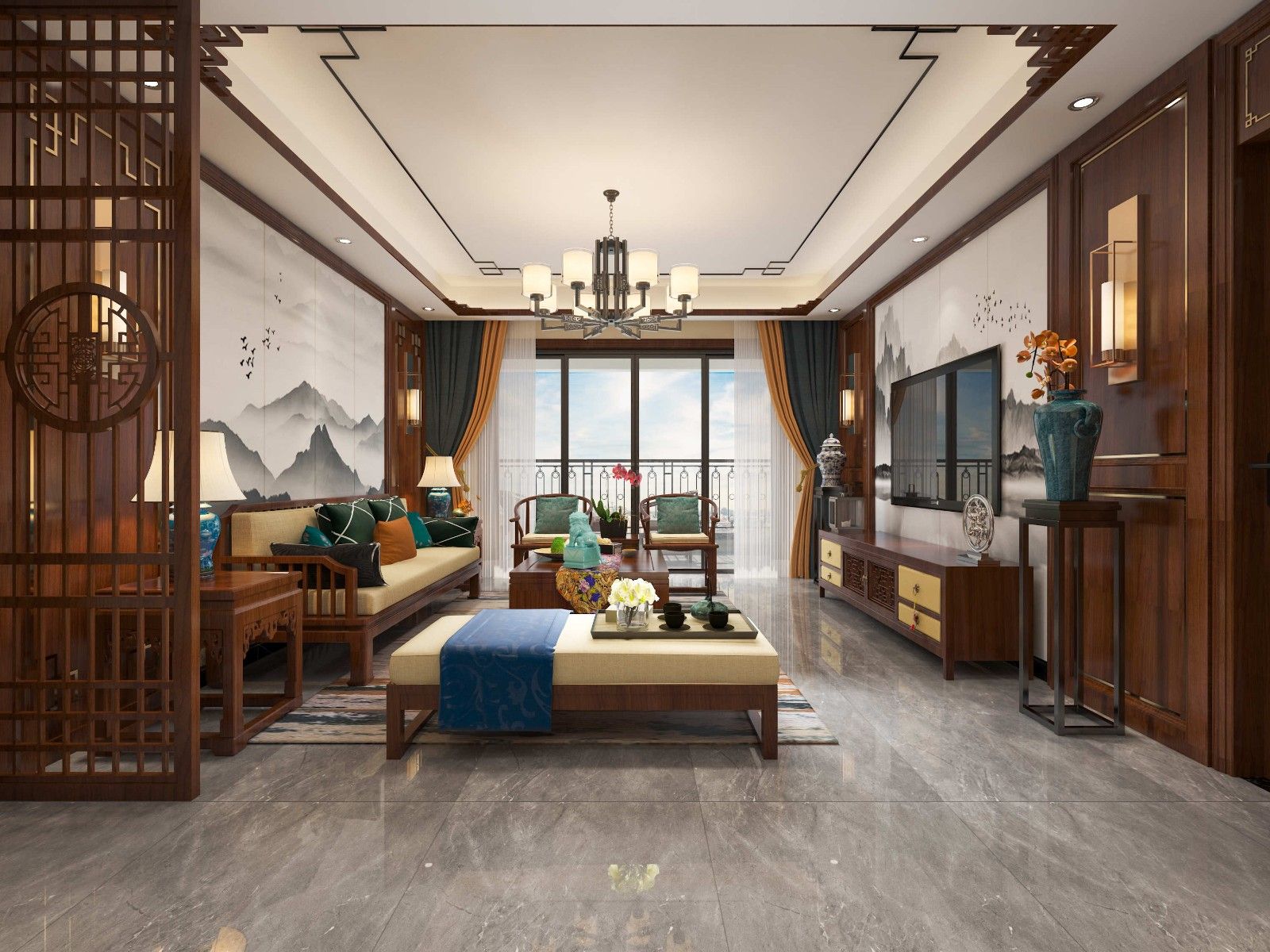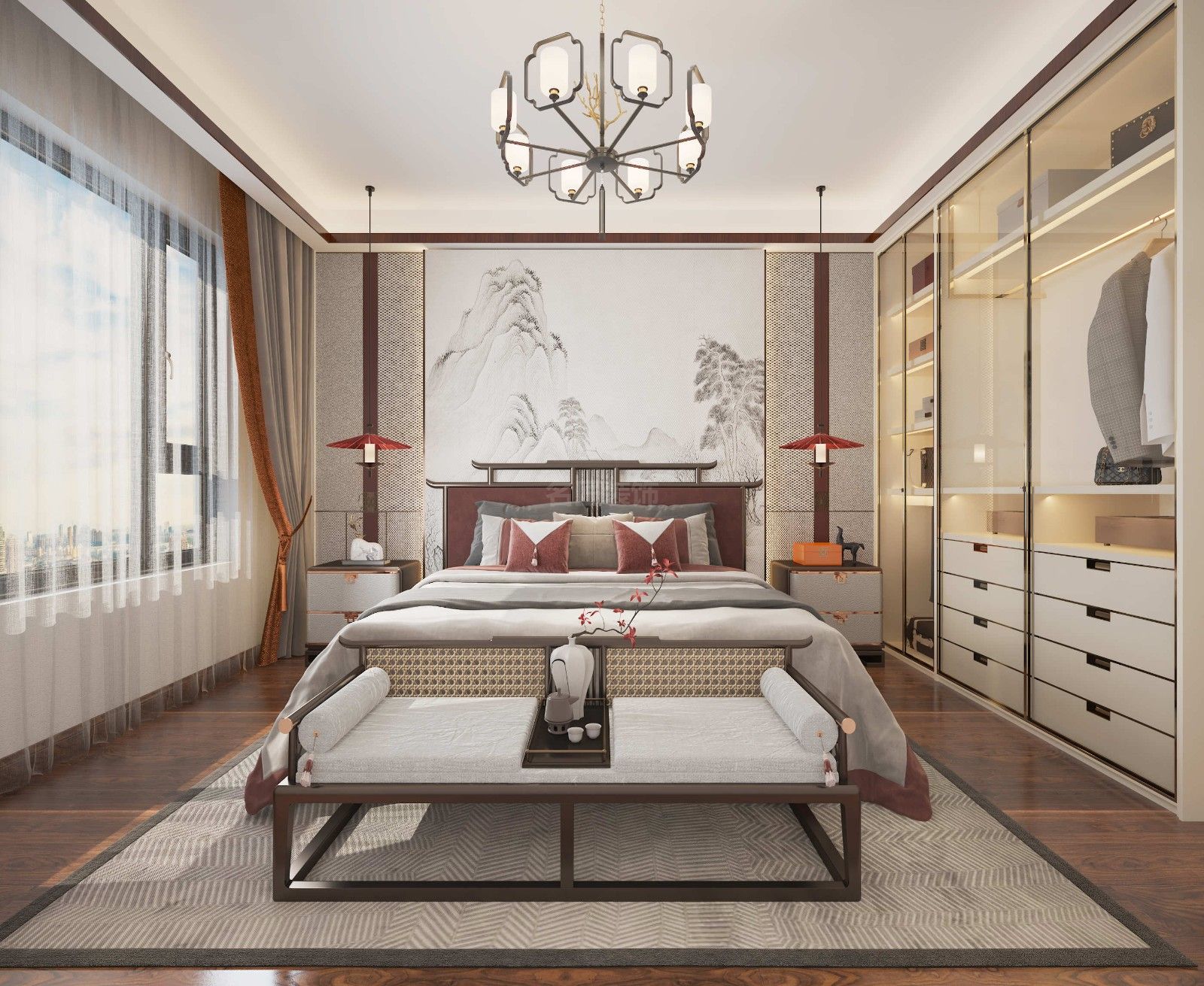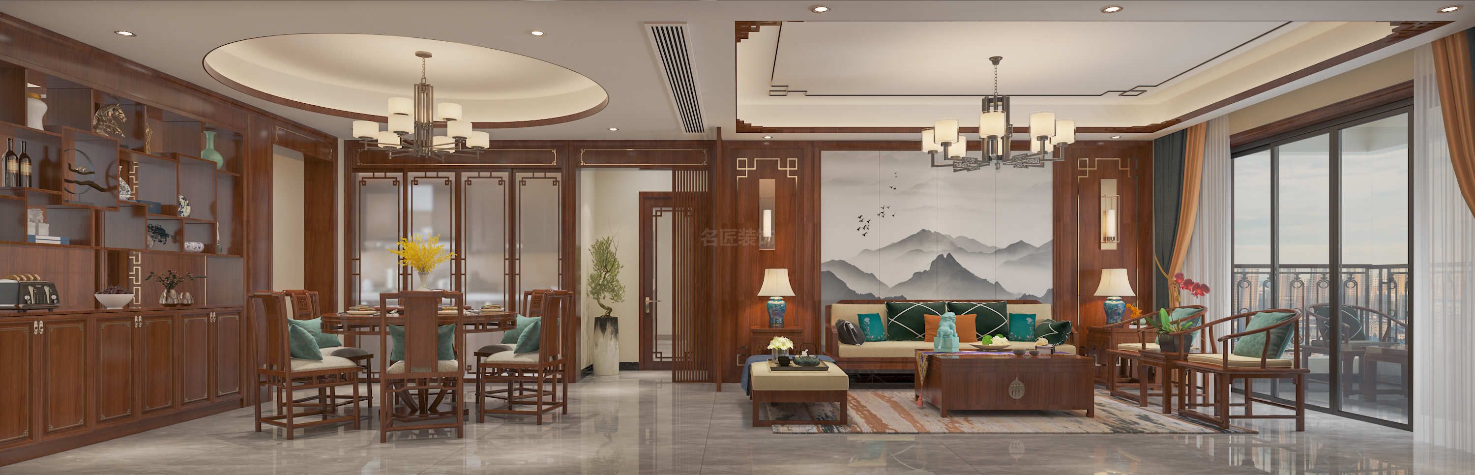 貴港盛世天禧三居新中式風(fēng)格裝修效果圖