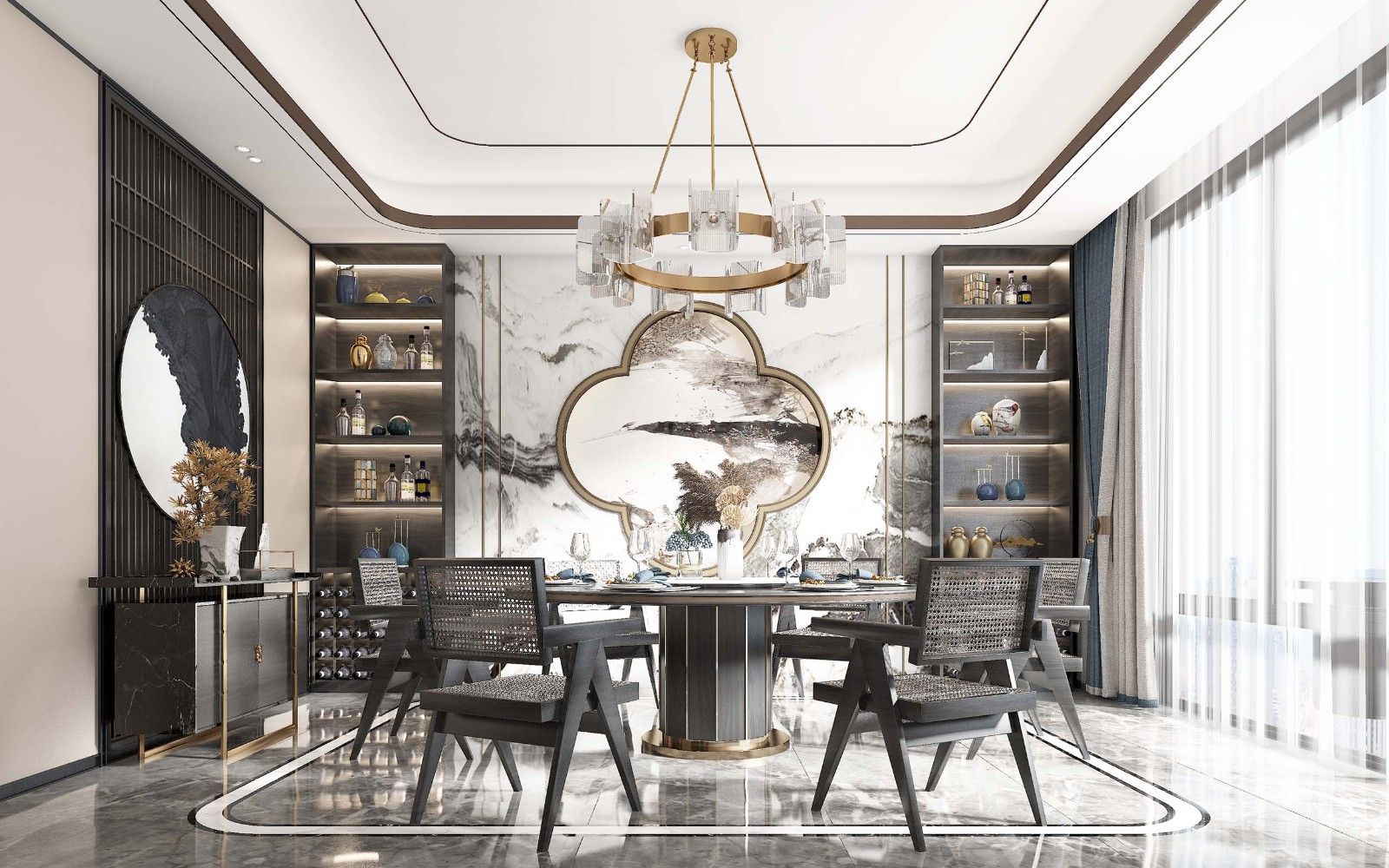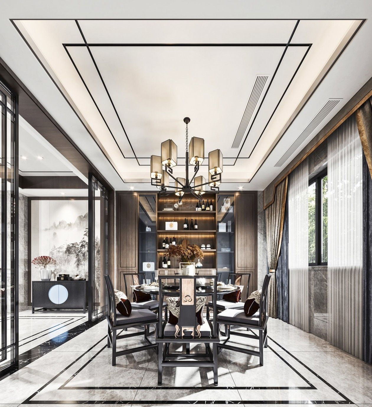 惠州201-300平米新中式風(fēng)格景安花園家裝設(shè)計(jì)效果圖