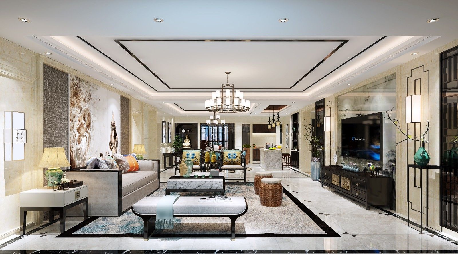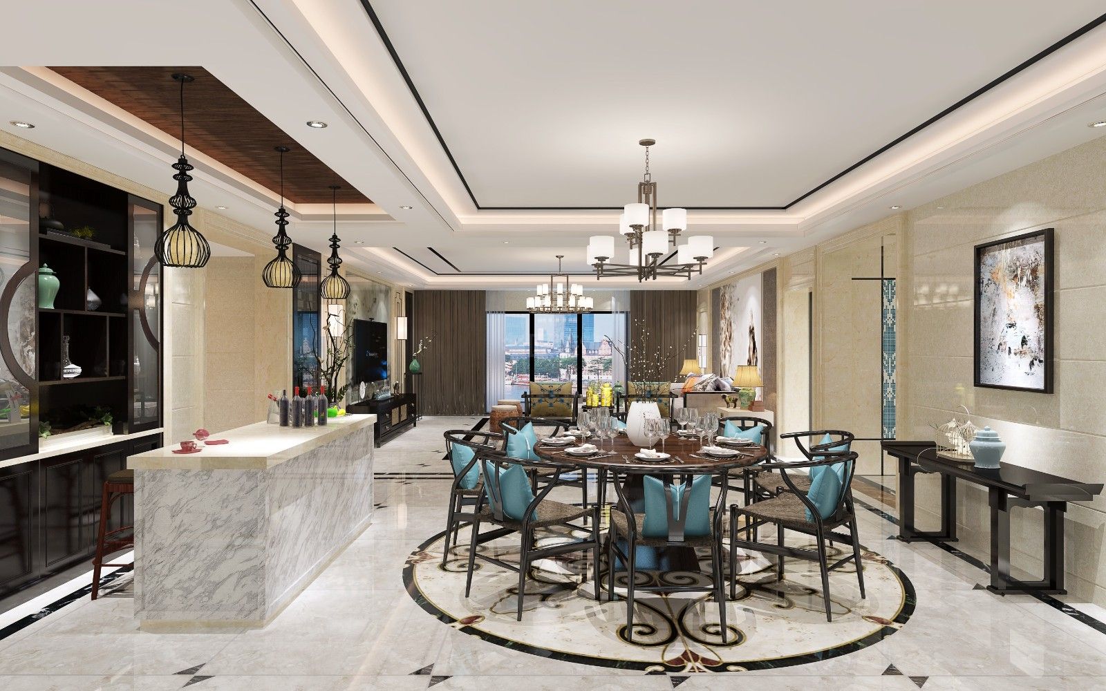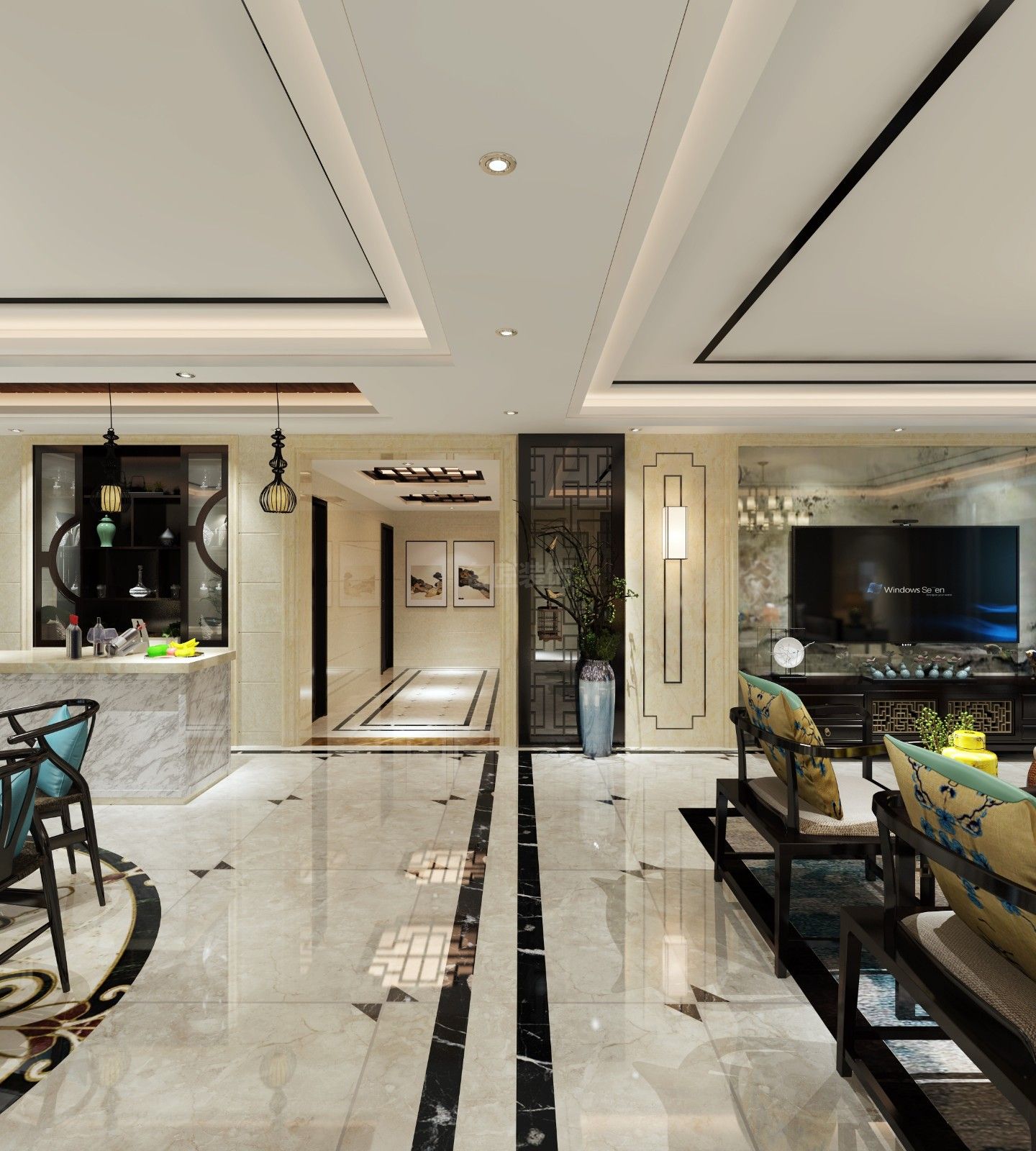 柳州201-300平米新中式風(fēng)格大信海岸家園家裝設(shè)計(jì)效果圖